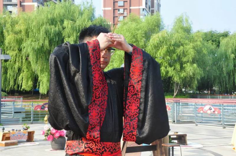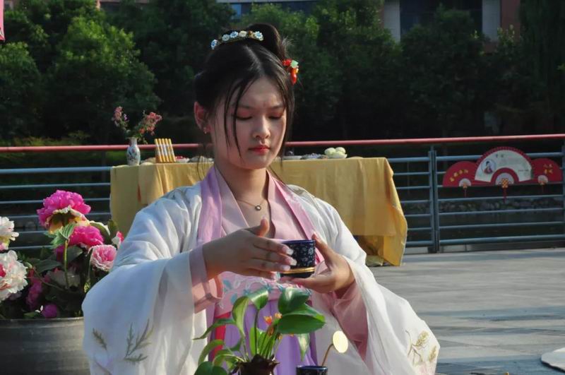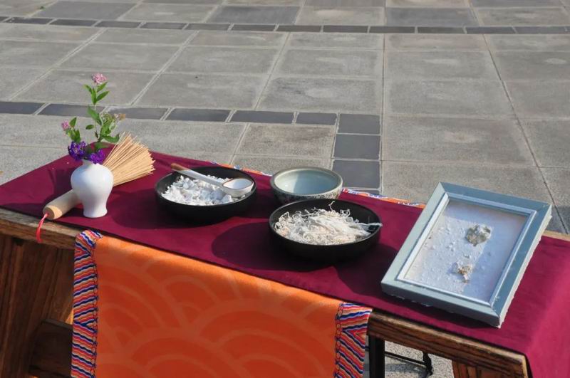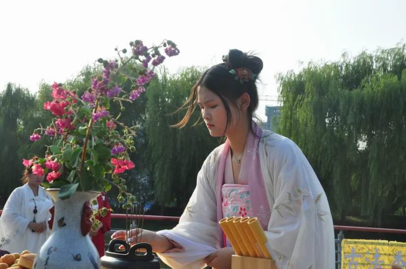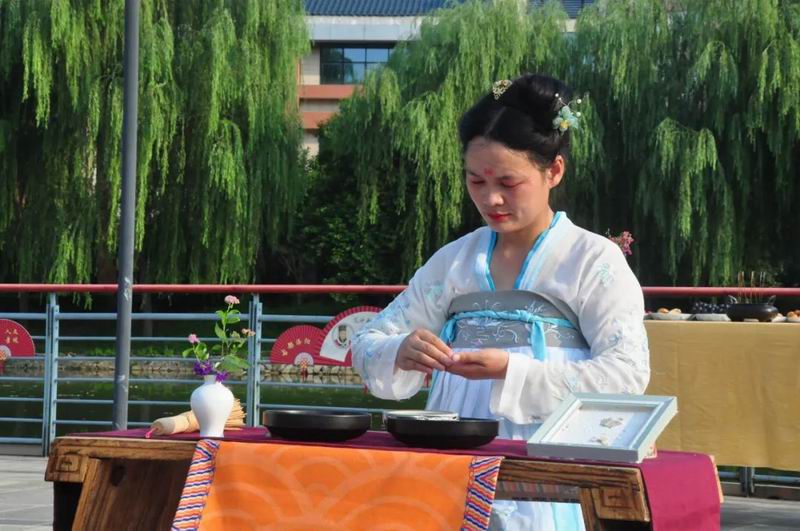 祭拜儀式結(jié)束后,傳統(tǒng)文化愛好者在古樸深沉、韻味悠長的古琴演奏中展示了制香、茶藝、古法造紙、香染等非遺文化和傳統(tǒng)技藝。