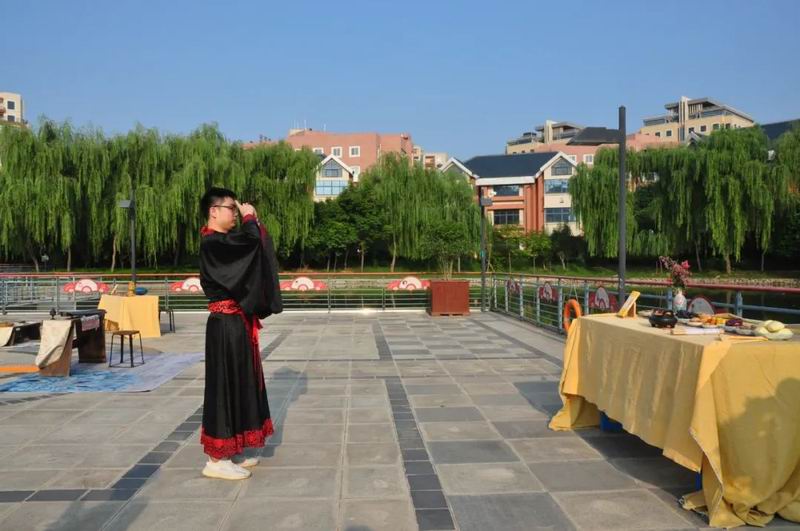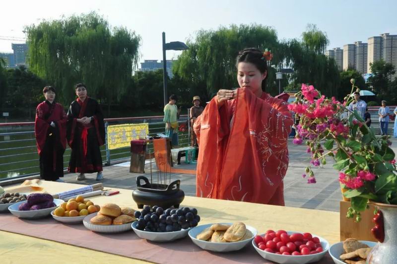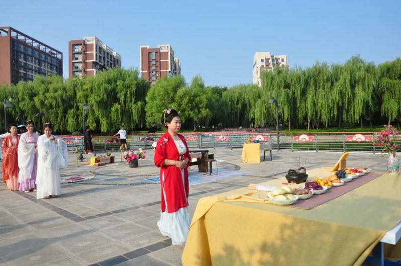 今天是8月4日,農(nóng)歷七月初七乞巧節(jié)。下午17時許,中國華僑國際文化交流基地炎黃科技園的湖心平臺上格外熱鬧,一場別開生面的乞巧節(jié)傳統(tǒng)文化大集活動正在這里舉行。