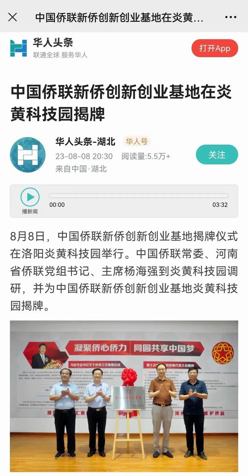 位于洛陽市洛龍區(qū)的炎黃科技園,以為僑服務(wù)為宗旨,在園區(qū)打造關(guān)心、愛心、聯(lián)心、貼心和舒心的“為僑服務(wù)站”,受到各級僑聯(lián)組織的肯定和贊揚,被中國僑聯(lián)認(rèn)定為“新僑創(chuàng)新創(chuàng)業(yè)基地”。近日,中國僑聯(lián)常委、河南省僑聯(lián)黨組書記、主席楊海強(qiáng)到炎黃科技園調(diào)研指導(dǎo),為中國僑聯(lián)新僑創(chuàng)新創(chuàng)業(yè)基地炎黃科技園揭牌,引起了廣泛的關(guān)注。